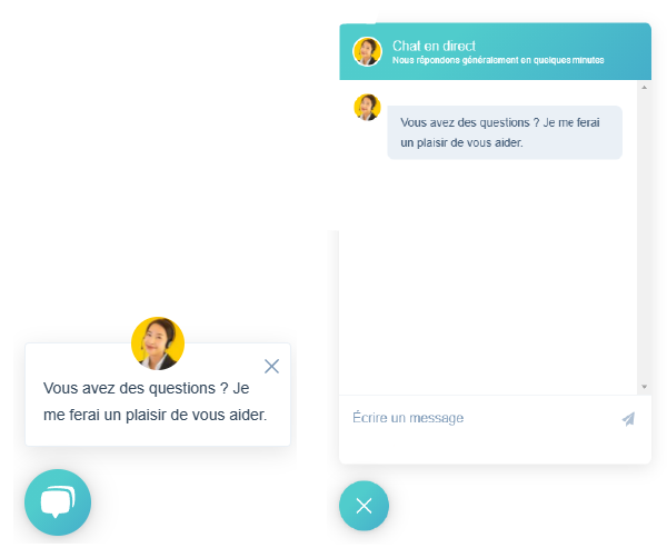 Tout comme le Live chat, le Click-to-chat permet une conversation en direct entre un conseiller et le client. Il est matérialisé par une petite fenêtre qui s’affiche sur toutes les pages d’un site web. Des messages textuels sont affichés sur cette fenêtre pop-up pour proposer ou engager une discussion instantanée avec les visiteurs.